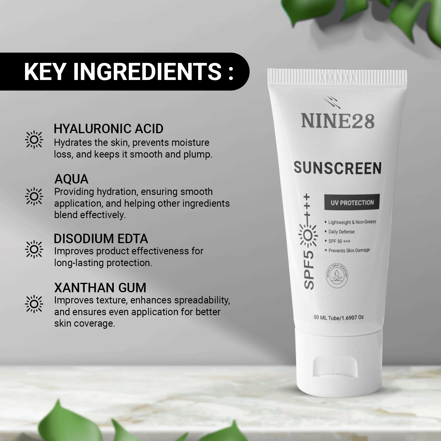 Nine28 Sunscreen SPF+++ | Lightweight, Hydrating & Broad-Spectrum Protection